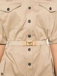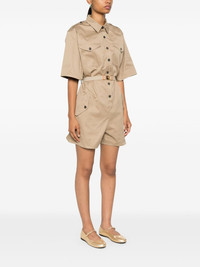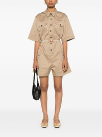belted playsuit Highlights - Beige - Cotton - Twill weave - Box-pleat detail - Classic collar - Short sleeves - Two chest patch pockets - Two side flap pockets - Detachable and adjustable waist belt - Unlined - Front button fastening Composition Cotton 100%, Linen/Flax 74%, Elastane 26% SIZE & FIT Model measurements Height 5 ft 10 in(1.78 m) Bust/Chest 32.67 in(83 cm) Hips 35.43 in(90 cm) Waist 23.22 in(59 cm) FittingInformation Designed to be unstructured, offering a loose fit throughout The belt offers adjustability for fitted preferences Made from a midweight non-stretch fabric This piece fits true to size – take your usual size Washing instructions Dry Clean Only