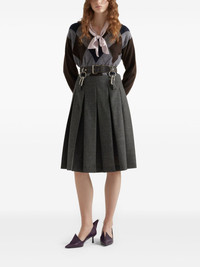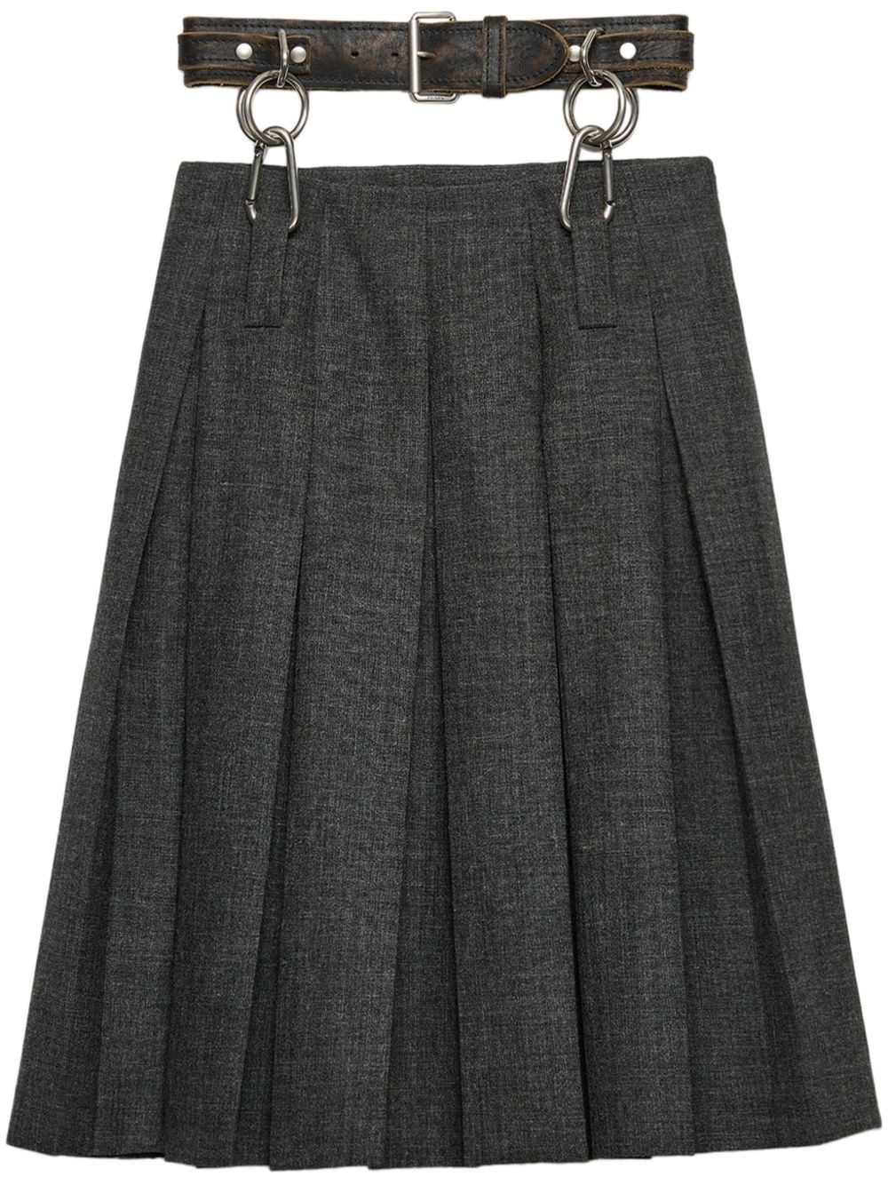 belted pleated midi skirt Highlights - Grey - Concealed side zip fastening - Two side inset pockets - Straight hem - Full lining Composition Wool 100%, Leather 100%
