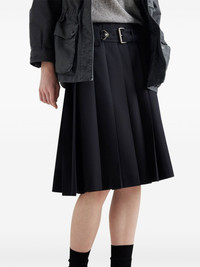 belted pleated skirt Highlights - Navy blue - Gabardine weave - Mid-length Composition Wool 100%