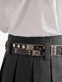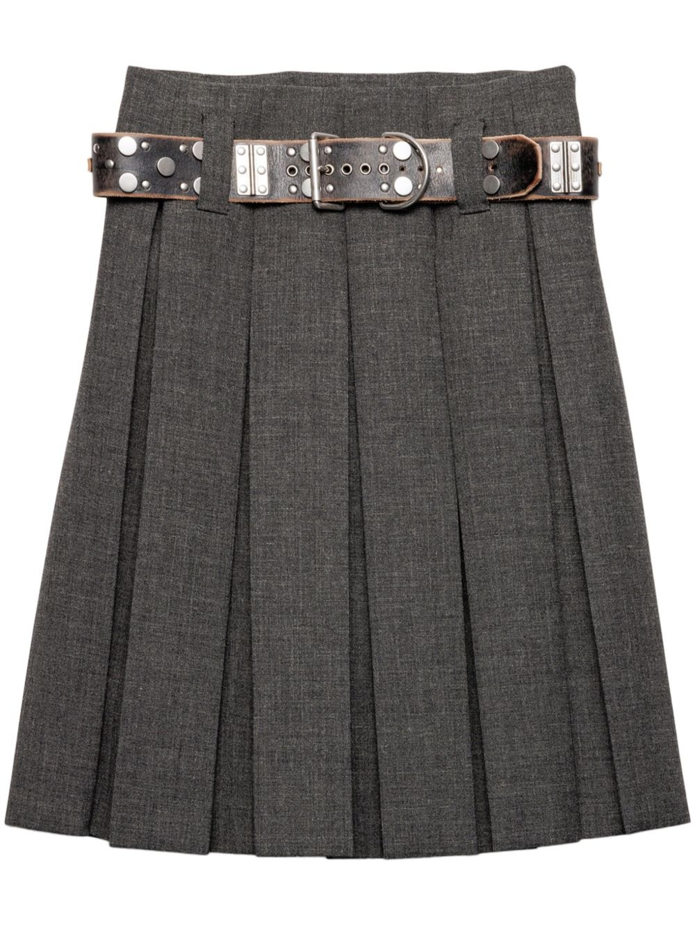 belted pleated skirt Highlights - Charcoal grey - Mid-length - Straight hem Composition Virgin Wool 100%
