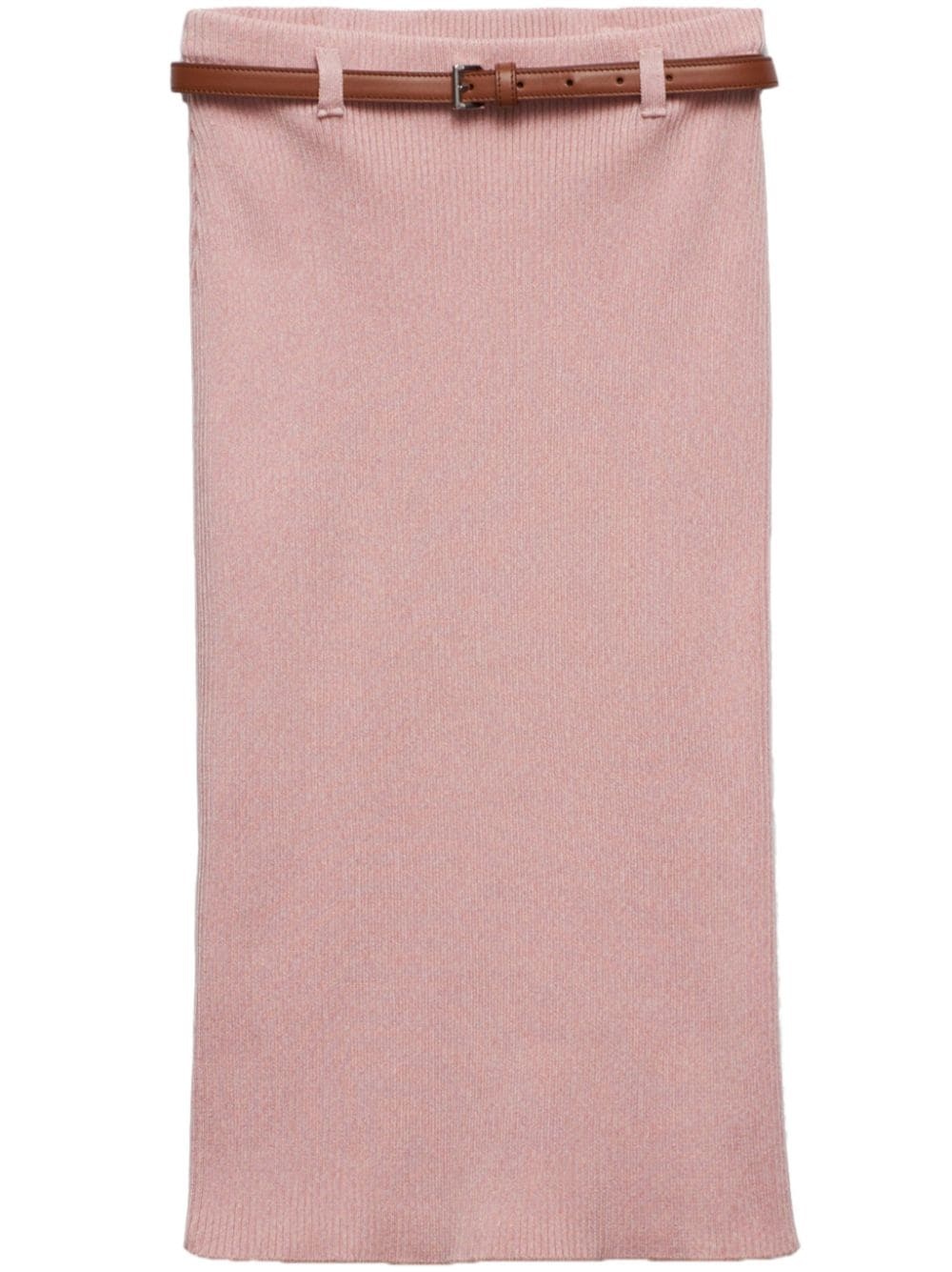 belted ribbed cotton midi skirt Highlights - Light pink - Cotton - Ribbed knit - Belt loops - Detachable waist belt - Mid-length - Straight hem Composition Cotton 100%