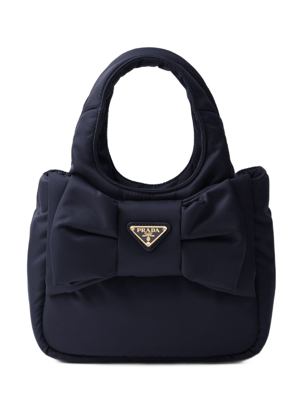 bow-embellished tote bag Highlights - Navy blue - Front bow detail - Logo plaque - Top handles - Detachable shoulder strap Composition Outer: Recycled Polyamide 100% Lining: Recycled Nylon 100% SIZE & FIT Measurement DEPTH 3.93 in(10 cm) HEIGHT 6.1 in(15.5 cm) WIDTH 7.08 in(18 cm)