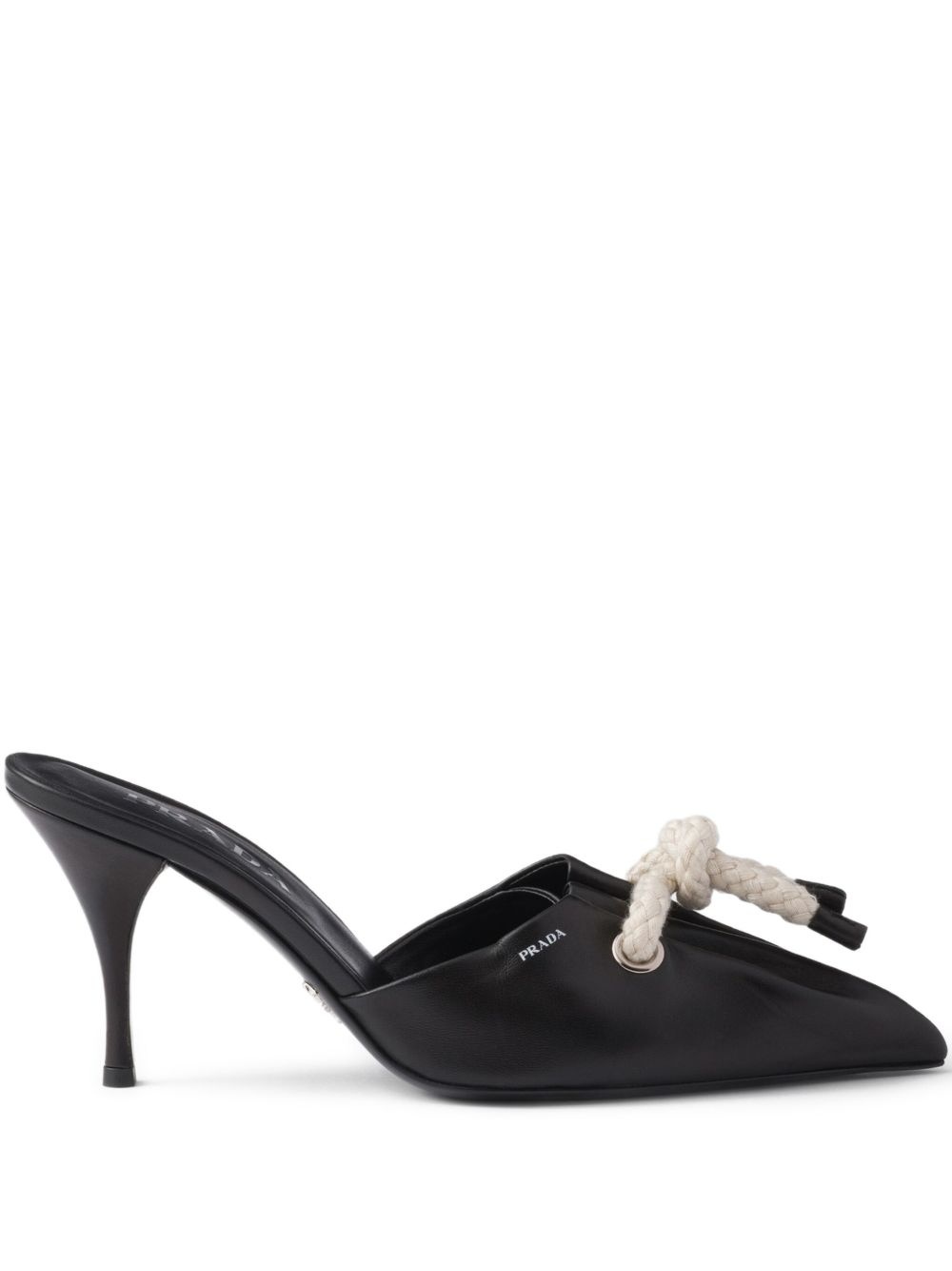 85mm braided-detail mules Highlights - Black - Logo print to the side - Braided strap - Pointed toe - Mid sculpted heel Composition Lining: Calf Leather 100% Outer: Nappa Leather 100% Sole: Calf Leather 100% SIZE & FIT Measurement HEEL 3.34 in(8.5 cm)