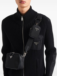 Brique messenger bag Highlights - Black - Recycled nylon - Triangle logo - Top zip fastening - Adjustable shoulder strap - Removable pouch - Internal patch pocket Composition Outer: Recycled Nylon 100%, Calf Leather 100% SIZE & FIT Measurement DEPTH 1.96 in(5 cm) HEIGHT 4.72 in(12 cm) WIDTH 7.48 in(19 cm)