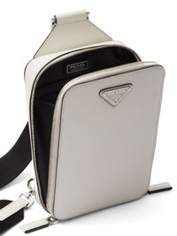 Brique leather shoulder bag Highlights - White - Leather - Adjustable shoulder strap - Enamel triangle logo - Two-way zip fastening - Main compartment - Internal logo plaque - Silver-tone hardware Composition Outer: Leather 100% Lining: Nylon 100% SIZE & FIT Measurement DEPTH 1.57 in(4 cm) HEIGHT 7.87 in(20 cm) WIDTH 5.51 in(14 cm)