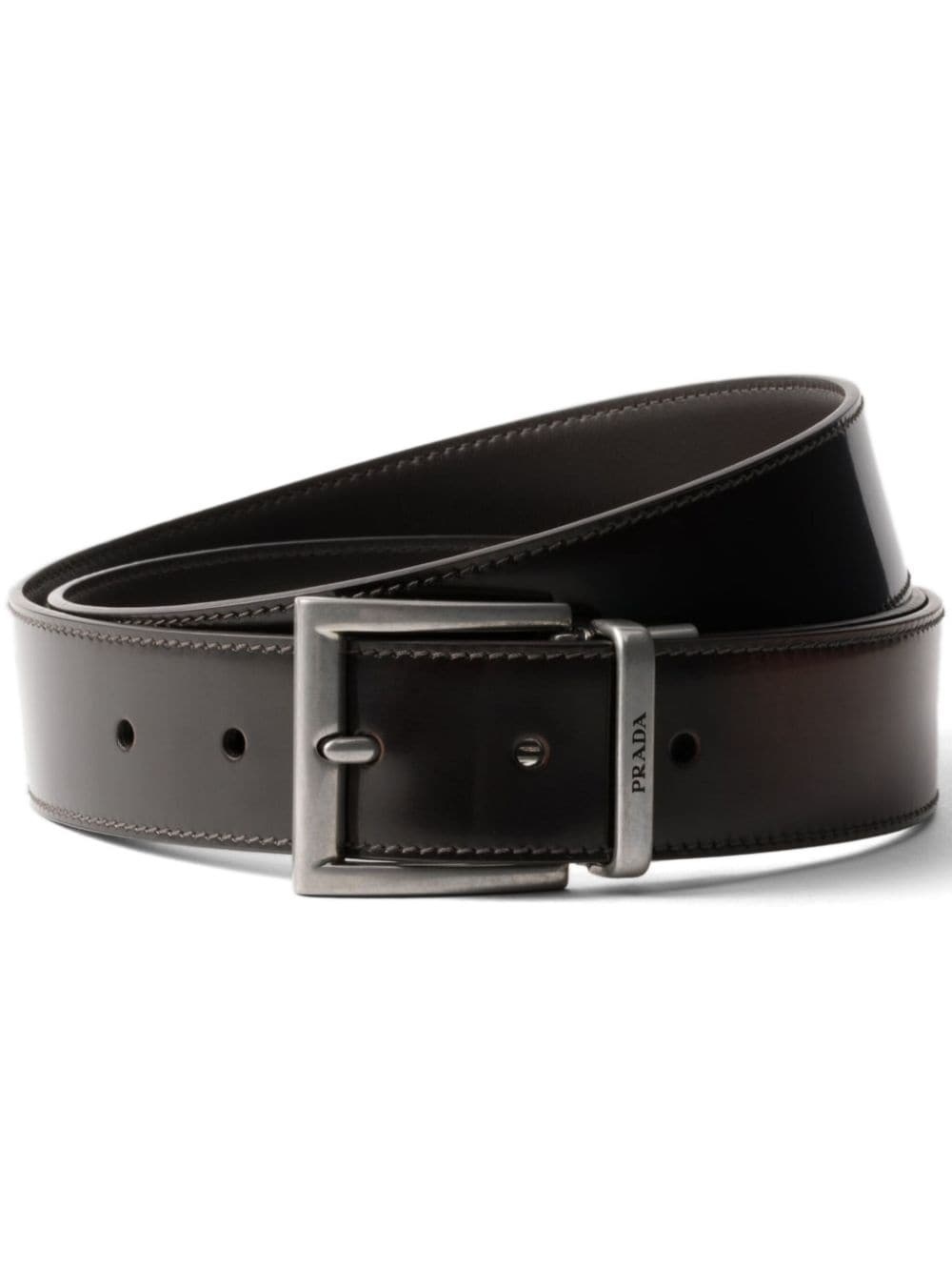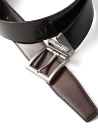 brushed-leather belt Highlights - Brown - Leather - Brushed effect - Buckle fastening - Silver-tone logo plaque - Punched holes - Adjustable fit Composition Leather 100%