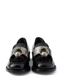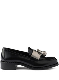 brushed leather loafers Highlights - Black - Branded leather insole - Stacked sole - Ring hardware detailing - Engraved logo Composition Sole: Rubber 100% Outer: Brass 100%, Leather 100% Lining: Leather 100% SIZE & FIT Measurement HEEL 1.37 in(3.5 cm)