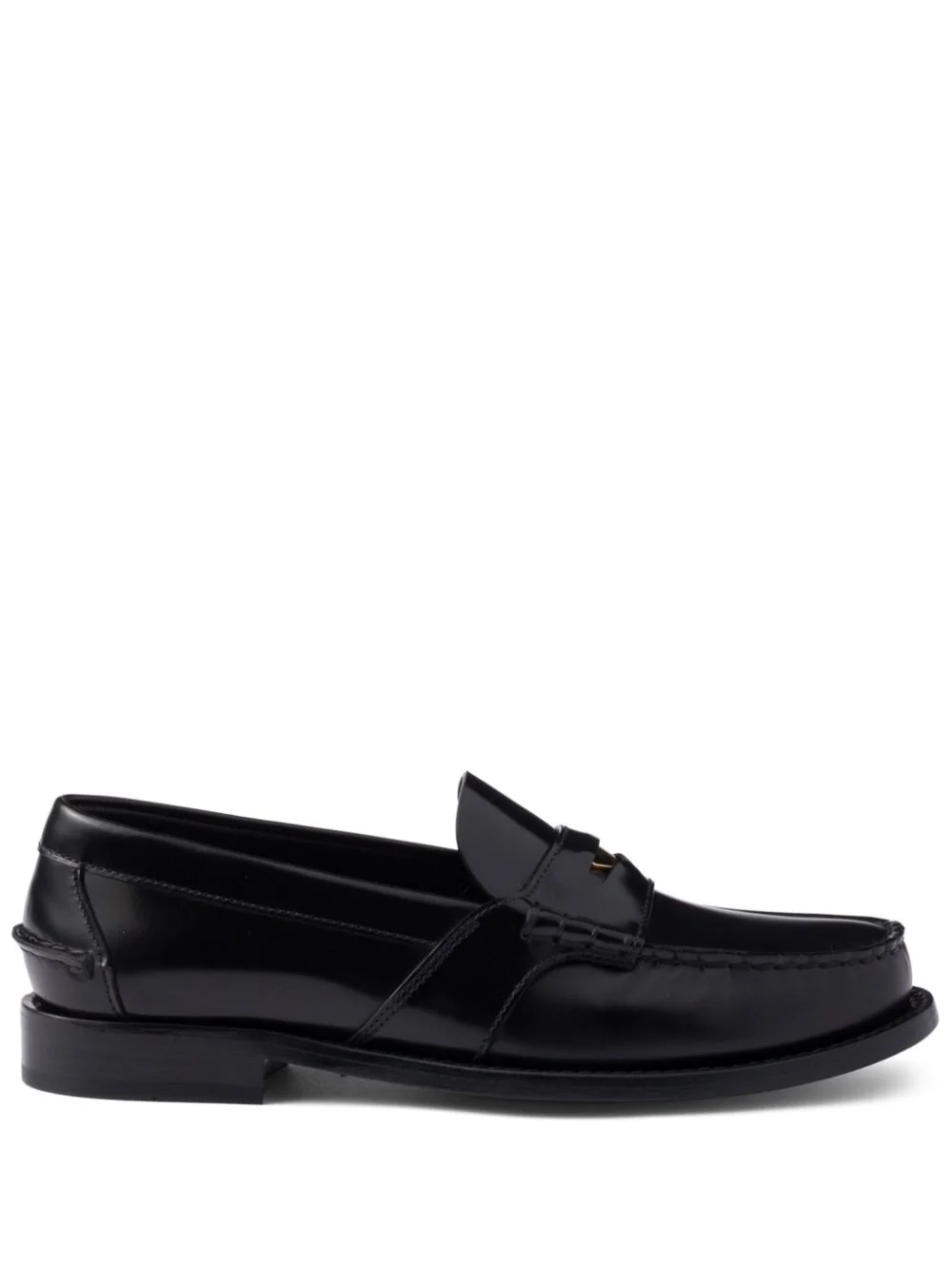 brushed-leather loafers Highlights - Black - Leather - Brushed effect - Slip-on style - Penny slot - Enamel triangle logo - Round toe - Branded leather insole - Rubber sole Composition Leather 100% SIZE & FIT Measurement HEEL 0.78 in(2 cm)