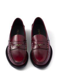 brushed-leather loafers Highlights - Red - Leather - Brushed effect - Slip-on style - Penny slot - Enamel triangle logo - Round toe - Branded leather insole - Rubber sole Composition Leather 100% SIZE & FIT Measurement HEEL 0.78 in(2 cm)