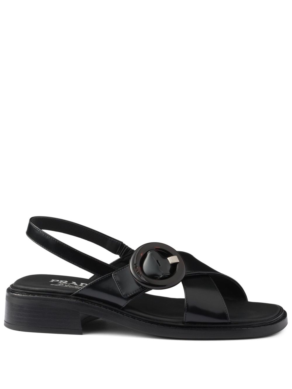 brushed leather sandals Highlights - Black - Slingback strap - Open toe - Flat rubber sole Composition Sole: Rubber 100%, Calf Leather 100% Outer: Calf Leather 100% Lining: Calf Leather 100%