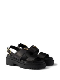 buckle-strap platform sandals Highlights - Black - Leather upper - Triangle logo - Buckle fastening - Platform sole - Lug tread Composition Sole: Rubber 100% Lining: Calf Leather 100% Outer: Calf Leather 100%