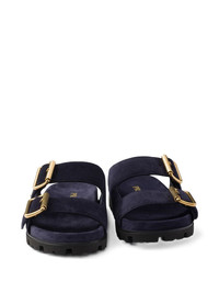 buckle suede slides