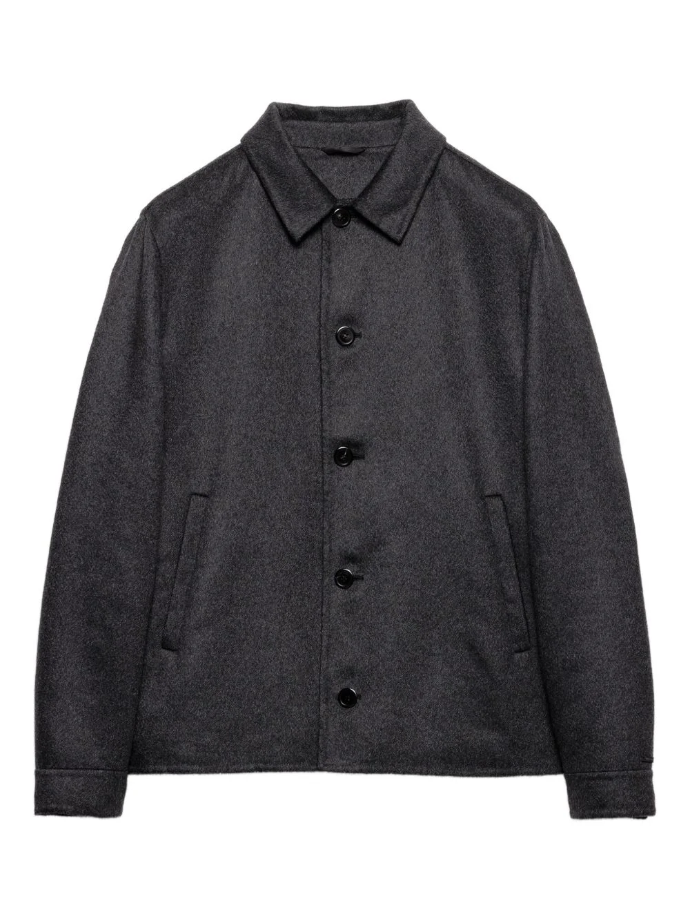 button double knit jacket Highlights - Grey - Shirt-style collar - Welt pockets - Button closure - Cuff button - Fabric triangle logo Composition Cashmere 100% Washing instructions Read Manufacturer Guidelines