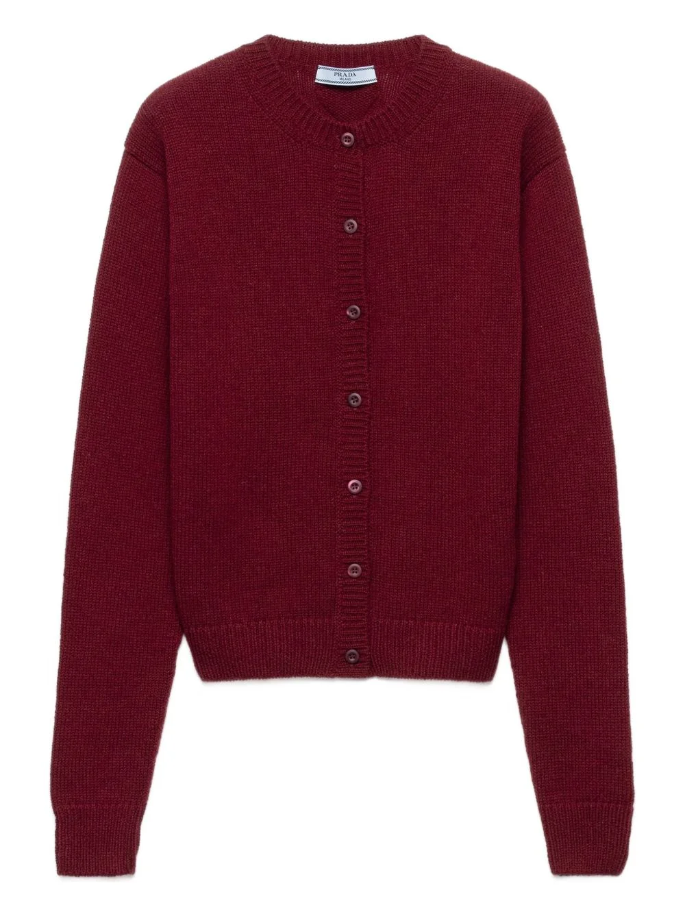 button-down cashmere cardigan Highlights - Dark red - Cashmere - Ribbed cuffs and hem - Crew neck - Front button-closure - Back triangle-logo - Long sleeves Composition Cashmere 100% Washing instructions Read Manufacturer Guidelines