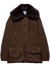 canvas jacket Highlights - Chocolate brown - Canvas - Front button fastening - Garment dyed - Distressed effect - Detachable shearling collar - Long sleeves - Two side patch pockets - Two side flap pockets - Logo patch to the rear - Straight hem Composition Sheep Skin/Shearling 100%, Canvas 100%