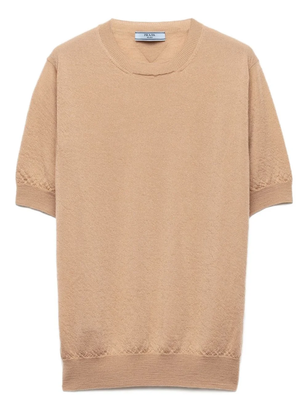 cashmere crew-neck sweater Highlights - Ribbed-knit trim - Knitted triangle logo - Short sleeves - Plain knit - Menswear fit - Crew neck - Semi-raglan shoulder - The model is 180 cm tall and wears a size 38 Composition Cashmere 100% SIZE & FIT Measurement BUST 31.65 in(80.4 cm) LENGTH 33.85 in(86 cm) WAIST 23.22 in(59 cm) Washing instructions Read Manufacturer Guidelines
