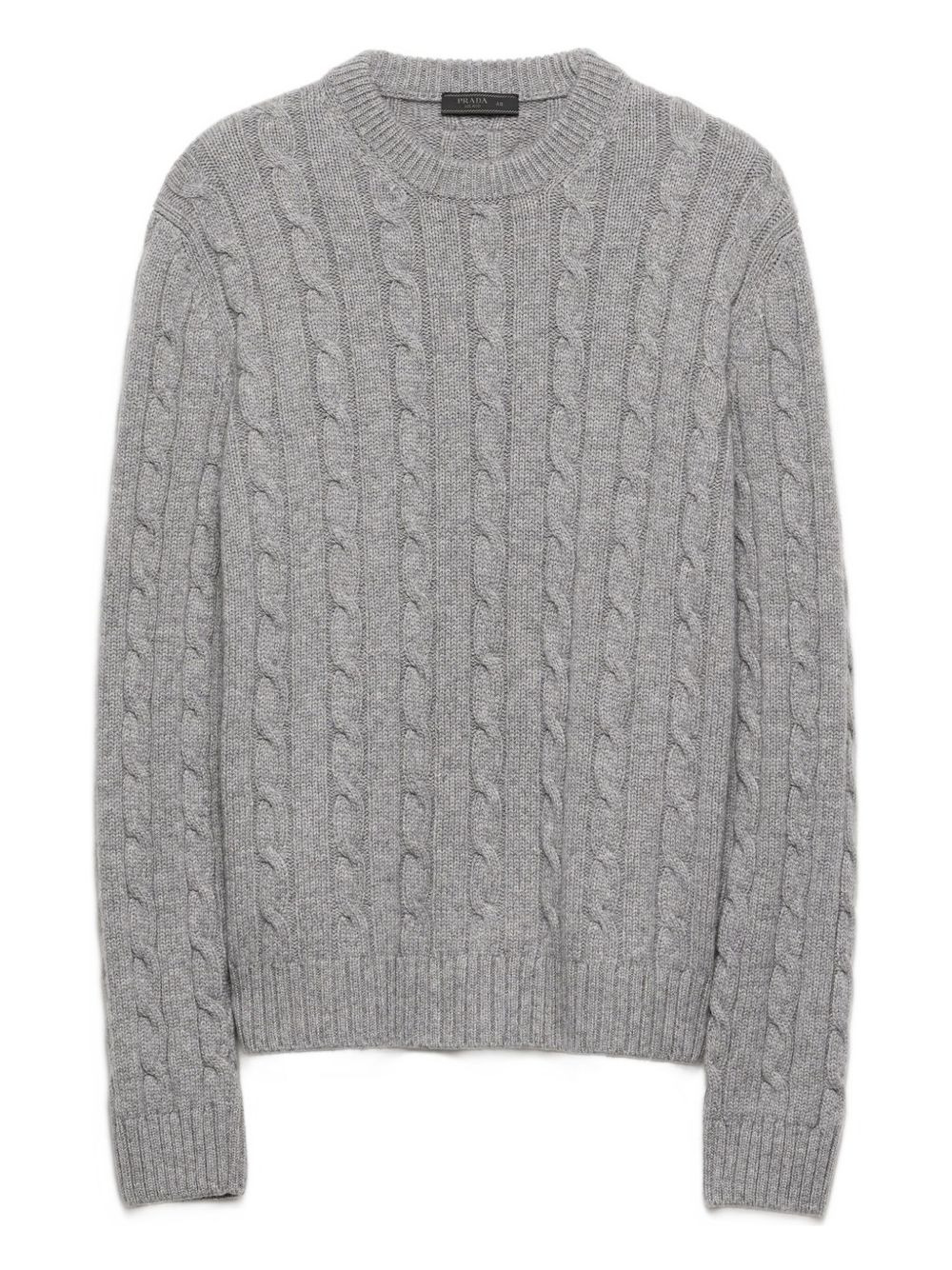 cashmere crew-neck sweater Highlights - Grey - Cashmere - Cable knit - Crew neck - Ribbed cuffs - Ribbed hem Composition Cashmere 100% Washing instructions Read Manufacturer Guidelines