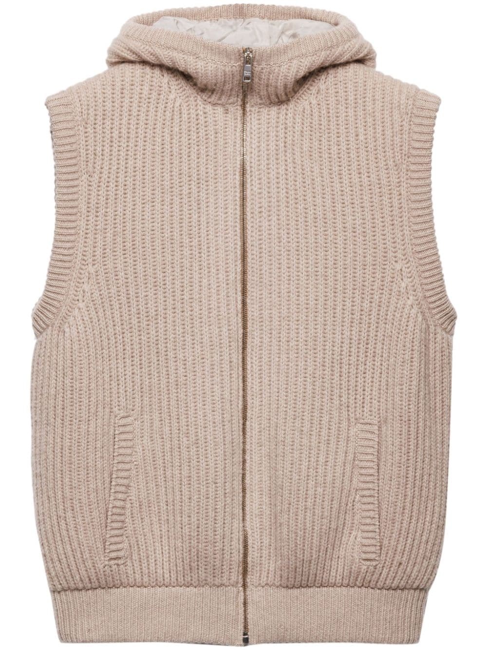 Cashmere hoodie vest Highlights - Sand beige - Cashmere - Ribbed knit - Logo patch to the rear - Classic hood - Ribbed hem - Front zip fastening Composition Cashmere 100%