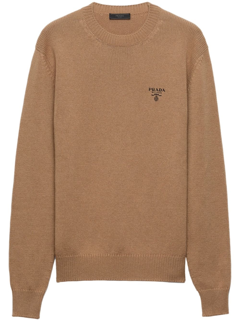 cashmere sweater Highlights - Light brown - Crew neck - Ribbed detailing - Long sleeves - Embroidered logo at the chest Composition Cashmere 100% SIZE & FIT FittingInformation Designed for a slim fit, offering a comfortable fit that sits just away from the body Made with a midweight knit, this piece offers some stretch