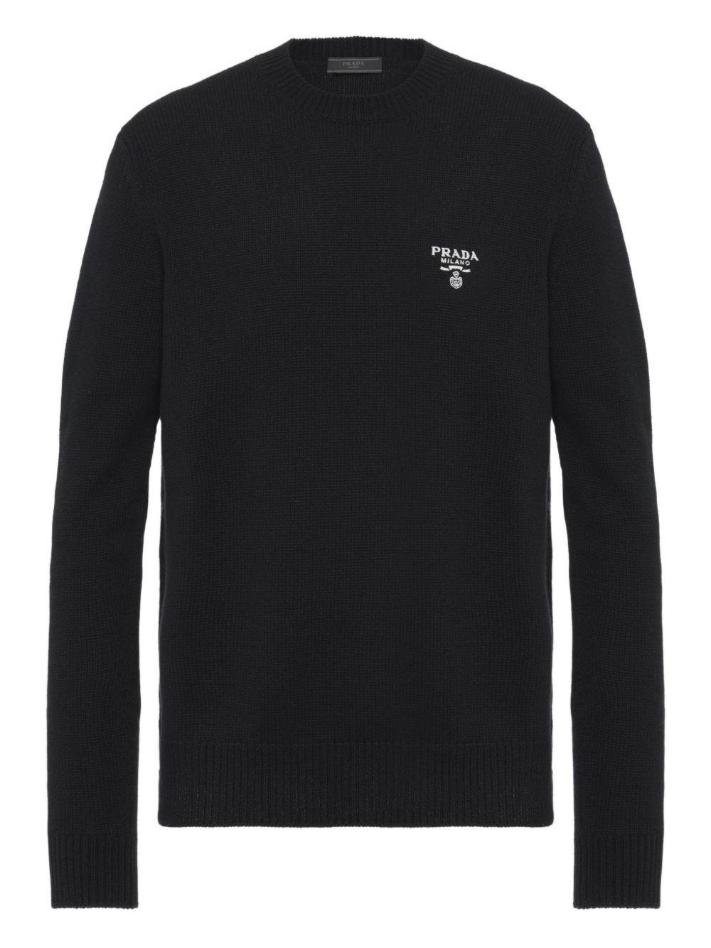 cashmere sweater Each season marks a chance for Prada to present classic wardrobe staples with a signature stamp of approval. A fine example is this knitted jumper, which comes crafted from cashmere for softness and is detailed with a simple embroidered logo on the chest for that final finish. Highlights - Black - Crew neck - Long sleeves - Logo print at the chest Composition Cashmere 100% SIZE & FIT FittingInformation Designed for a slim fit, offering a comfortable fit that sits just away from the body Made with a midweight knit, this piece offers some stretch Washing instructions Read Manufacturer Guidelines