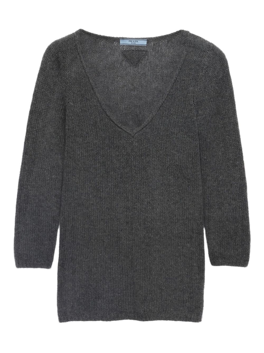 cashmere top Highlights - Anthracite grey - Vertical seamed - V-neck - Three-quarter length sleeves Composition Cashmere 100%