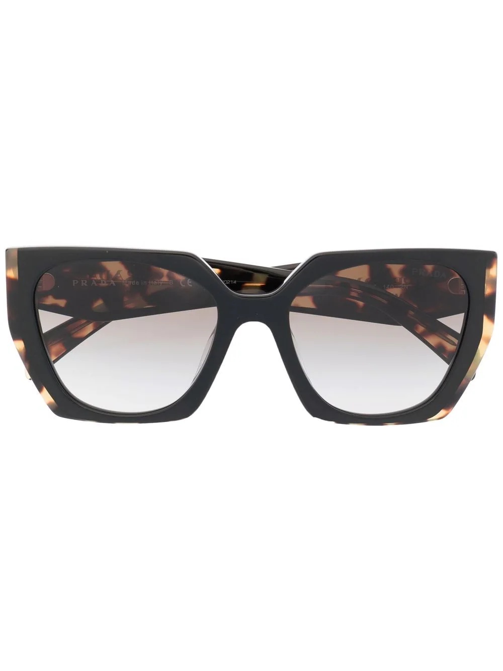 cat-eye frame sunglasses These oversized sunglasses from Prada Eyewear are characterised by a geometric design. Featuring sculpted arms with the house's logo, the pair boasts a tortoiseshell effect that contrasts with its contemporary design. Highlights - Black - Acetate - Tortoiseshell effect - Cat-eye frame - Straight arms - Curved tips - These glasses come with a protective case. Composition Acetate 100% SIZE & FIT Measurement Arm Length 5.51 in(14 cm) Bridge Width 0.74 in(1.9 cm) Lens Diameter 2.12 in(5.4 cm) Total Width 5.7 in(14.5 cm)