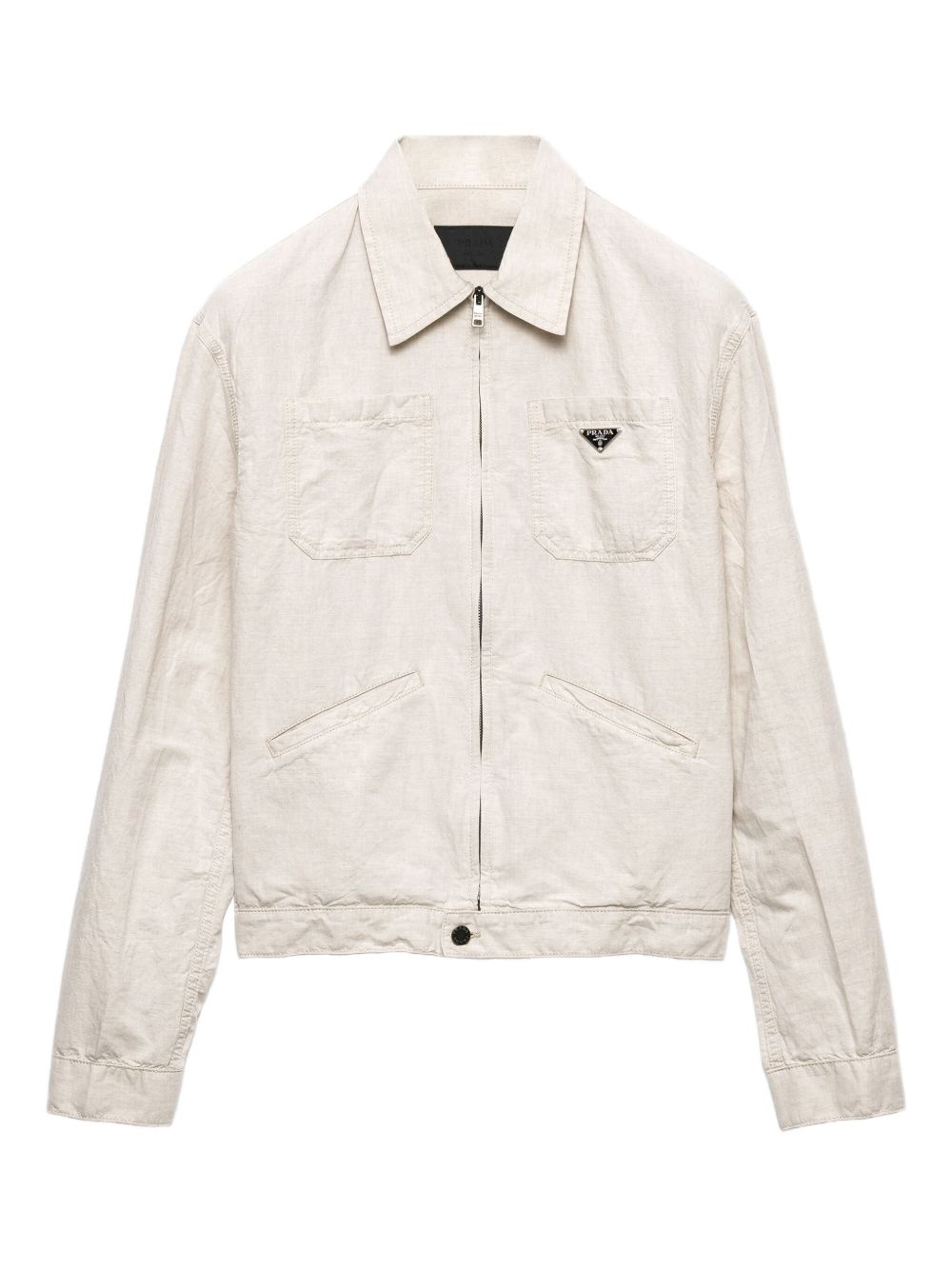 chambray shirt jacket Highlights - White - Front zip fastening - Two chest patch pockets - Two side welt pockets - Enamel triangle logo Composition Cotton 65%, Linen/Flax 35%
