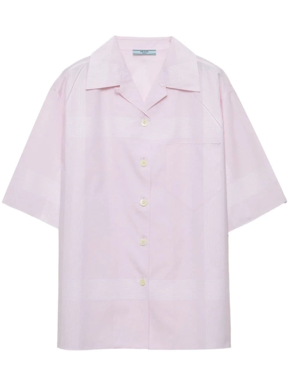 checked cotton shirt Highlights - Light pink - Cotton - Check pattern - Cuban collar - Front button fastening - Short sleeves - Chest patch pocket - Straight hem Composition Cotton 100%