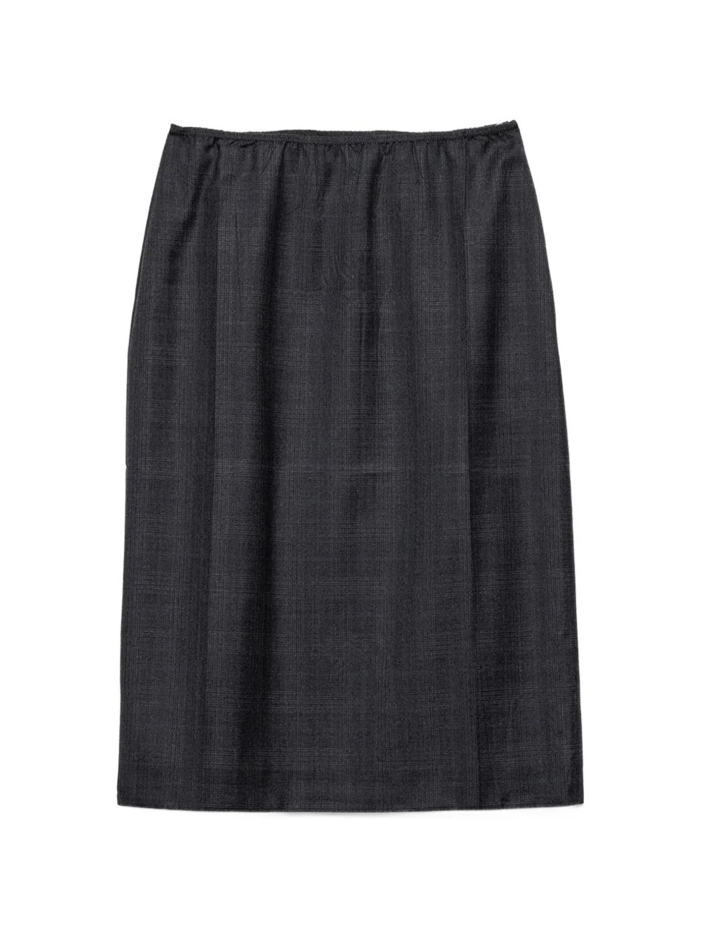 checked wool midi-skirt Highlights - A pure line comes alive with unexpected details: rigorous check meets a contrasting lace-trimmed hem, revealing strong and modern femininity. this sleek garment celebrates meticulous tailoring and personal style. - Straight fit - Unlined garment - Side button closure - Hem detail in a contrasting fabric and lace - Wool Composition Wool 100% Washing instructions Read Manufacturer Guidelines