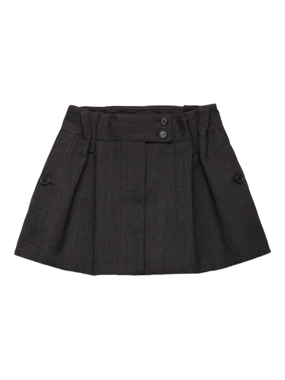 chevron-pattern pleated mini skirt Highlights - Dark grey - Herringbone pattern - Pleated detailing - Button fastening - Wool fabric Composition Virgin Wool 100% Washing instructions Read Manufacturer Guidelines