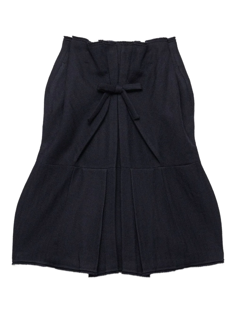 chevron wool midi skirt Highlights - Chevron pattern - Soft draping - Exposed seams - Pleated detailing - Raw-cut edges - Sheath fit - Lined garment - Side pockets - Bow detail - The model is 178 cm tall and wears a size 38 Composition Virgin Wool 100% SIZE & FIT Measurement HIPS 33.85 in(86 cm) WAIST 23.22 in(59 cm) Washing instructions Read Manufacturer Guidelines