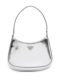 Cleo leather shoulder bag In a metallic silver hue, this Cleo shoulder bag from Prada SS23 is punctuated with a signature triangular enamel logo plaque to the front. Fabricated in Italy, the compact silhouette is a moden iteration of a signature style from the label, which first debuted in the 1990s. Highlights - Silver - Calf leather - Triangle logo - Tonal logo plaque - Single top handle - Main compartment Composition Outer: Calf Leather 100% SIZE & FIT Measurement DEPTH 2.36 in(6 cm) HEIGHT 8.66 in(22 cm) WIDTH 10.62 in(27 cm)