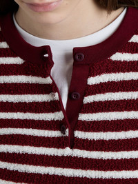 cotton boucle polo top Highlights - Burgundy - Front button placket - Crew neck - Short sleeves - Straight hem Composition Cotton 100%