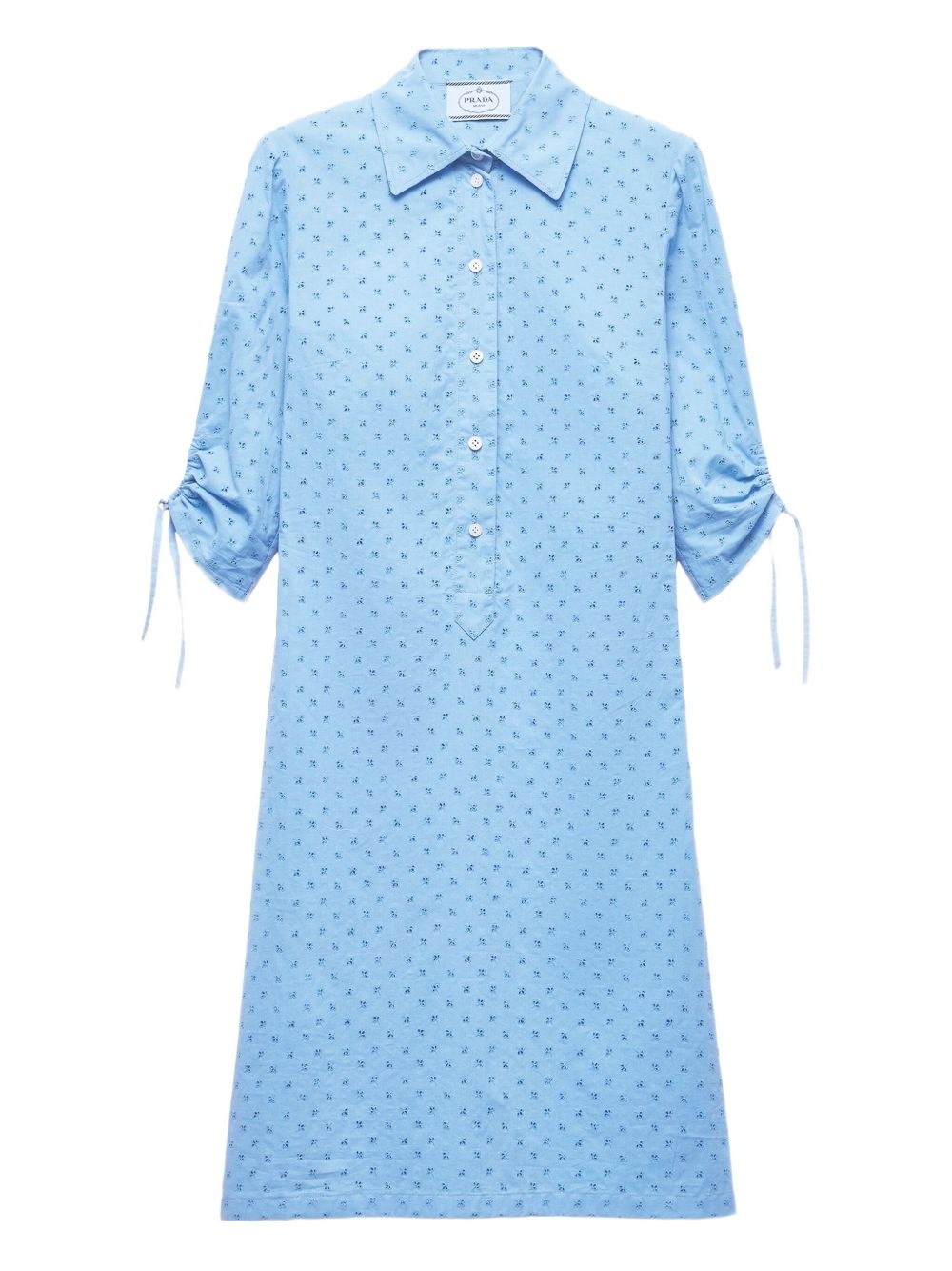 cotton dress Highlights - Sky blue - Short front button fastening - Straight-point collar - Three-quarter length sleeves - Straight hem Composition Cotton 100% Washing instructions Read Manufacturer Guidelines
