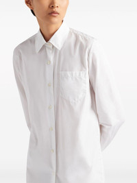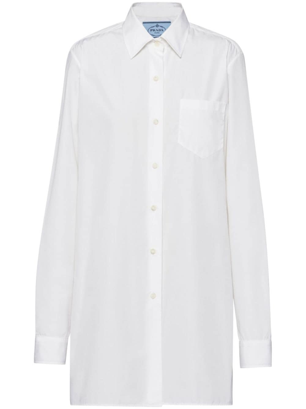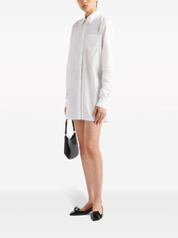 cotton shirt minidress Taking in the classic white shirt, Prada gives it a twist and transforms it into a mini dress. It is crafted in white cotton and features the brand's iconic triangle logo at the nape. Highlights - White - Cotton - Classic collar - Triangle logo - Long sleeves - Chest patch pocket - Thigh-length - Straight hem Composition Cotton 100% Washing instructions Read Manufacturer Guidelines