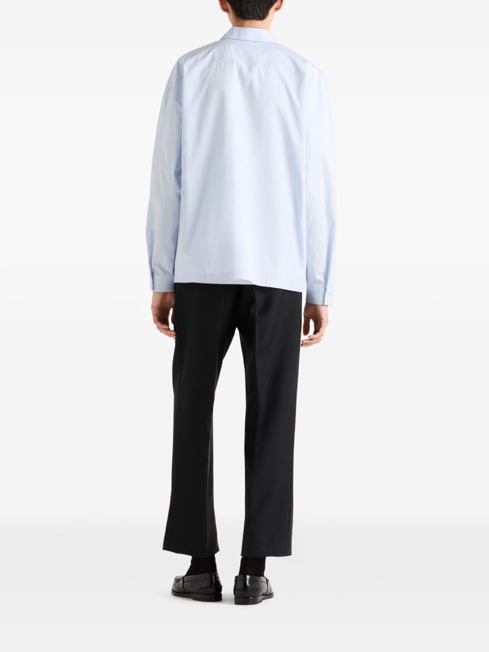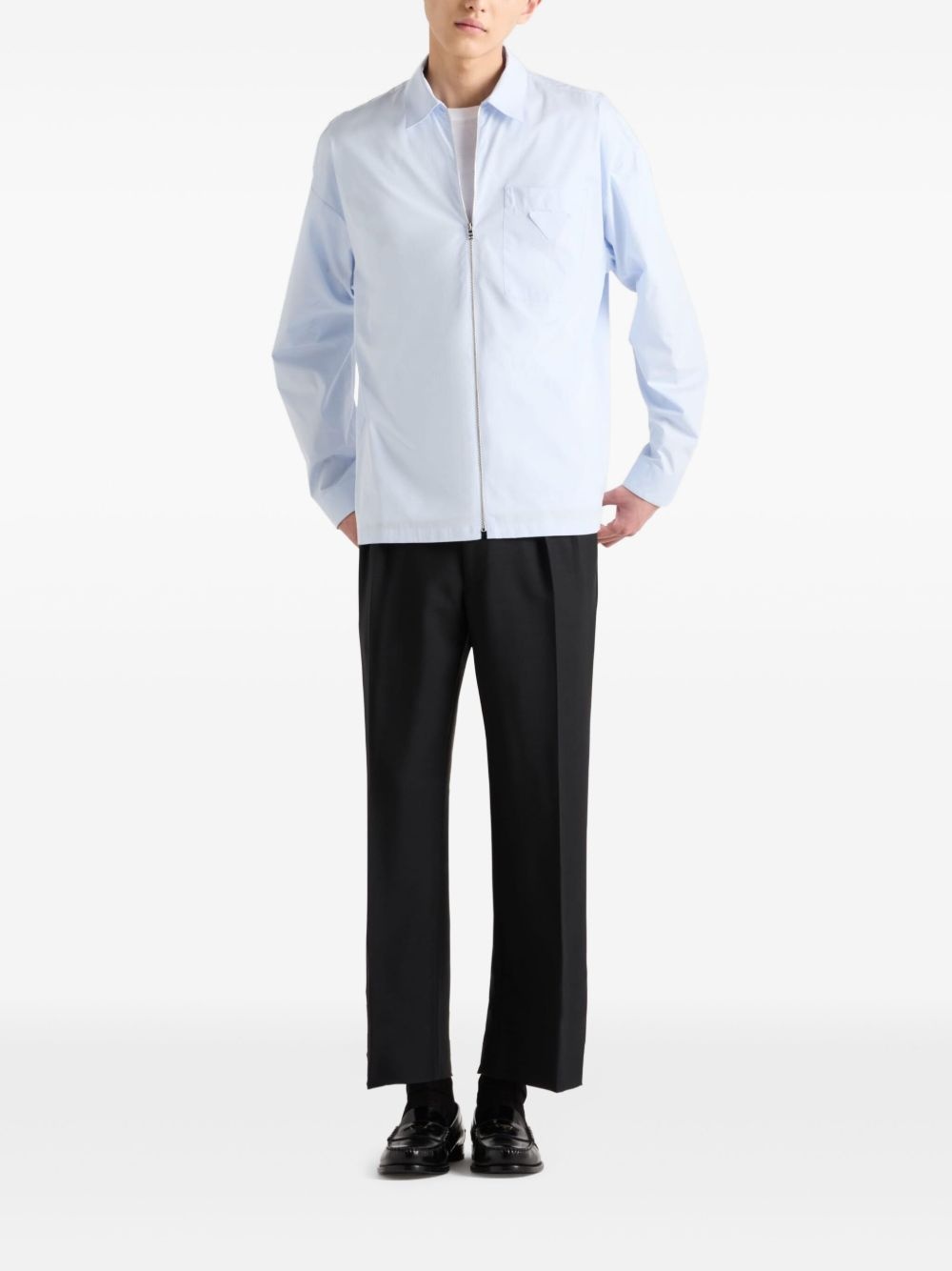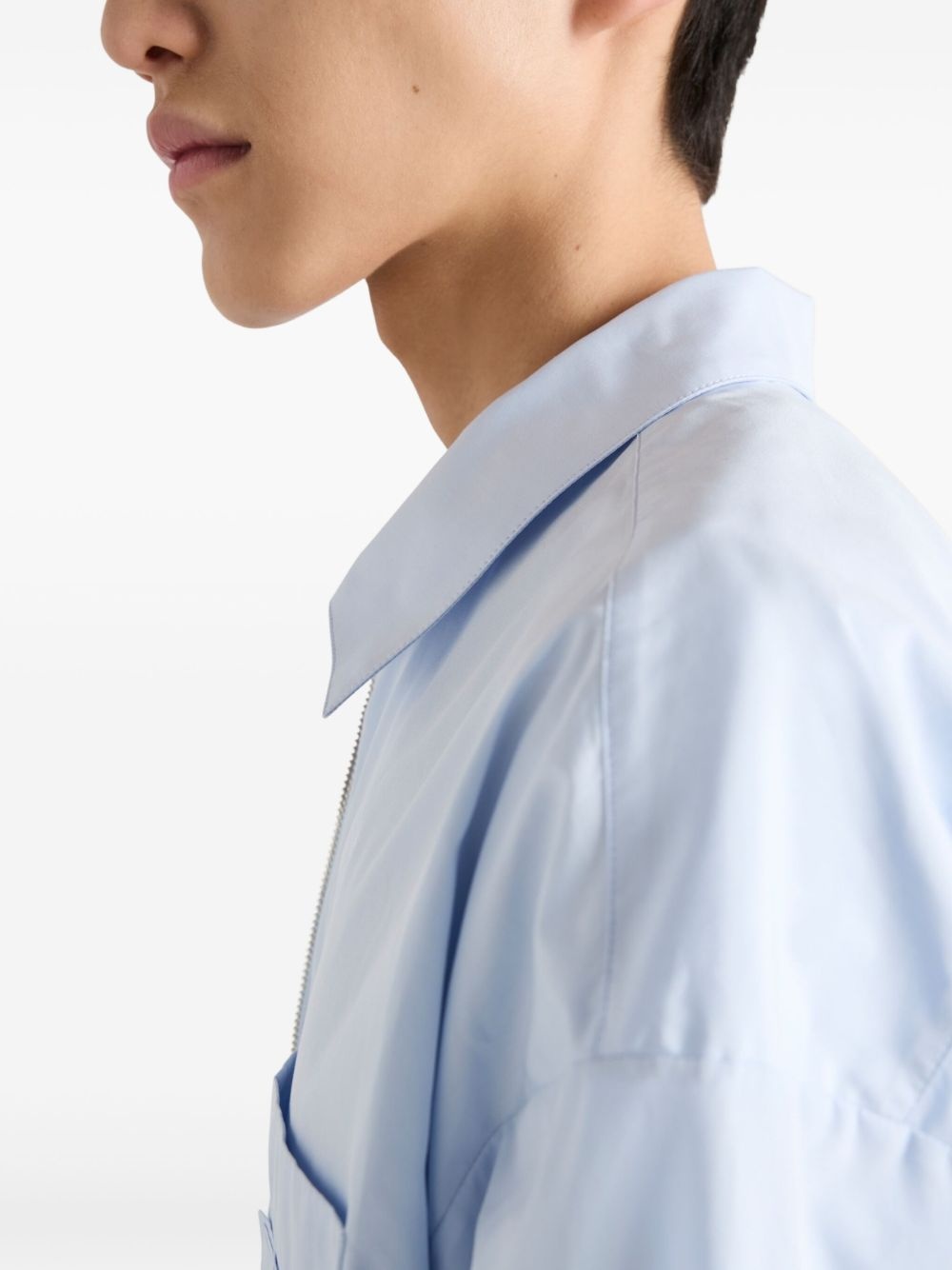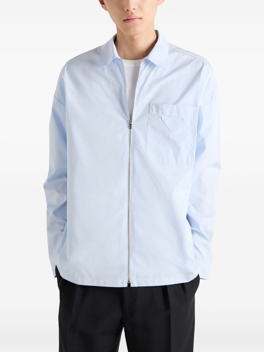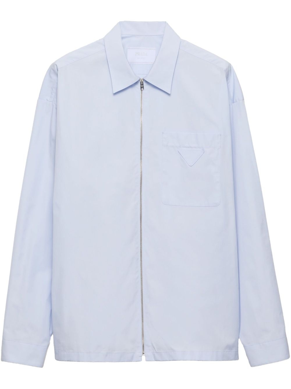 cotton zip-up shirt Highlights - Blue - Front zip fastening - Chest patch pocket - Long sleeves - Buttoned cuffs Composition Cotton 100%