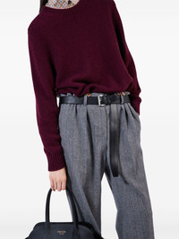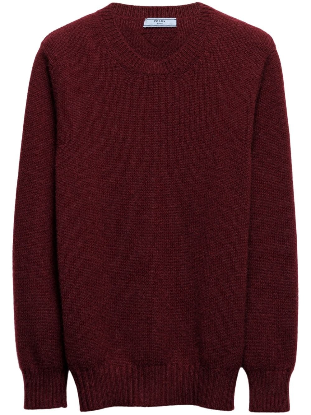 crew-neck cashmere-wool jumper Highlights - Burgundy - Wool-cashmere blend - Knitted construction - Enamel triangle logo - Crew neck - Long sleeves - Ribbed cuffs and hem - Straight hem Composition Cashmere 100%, Wool 100%