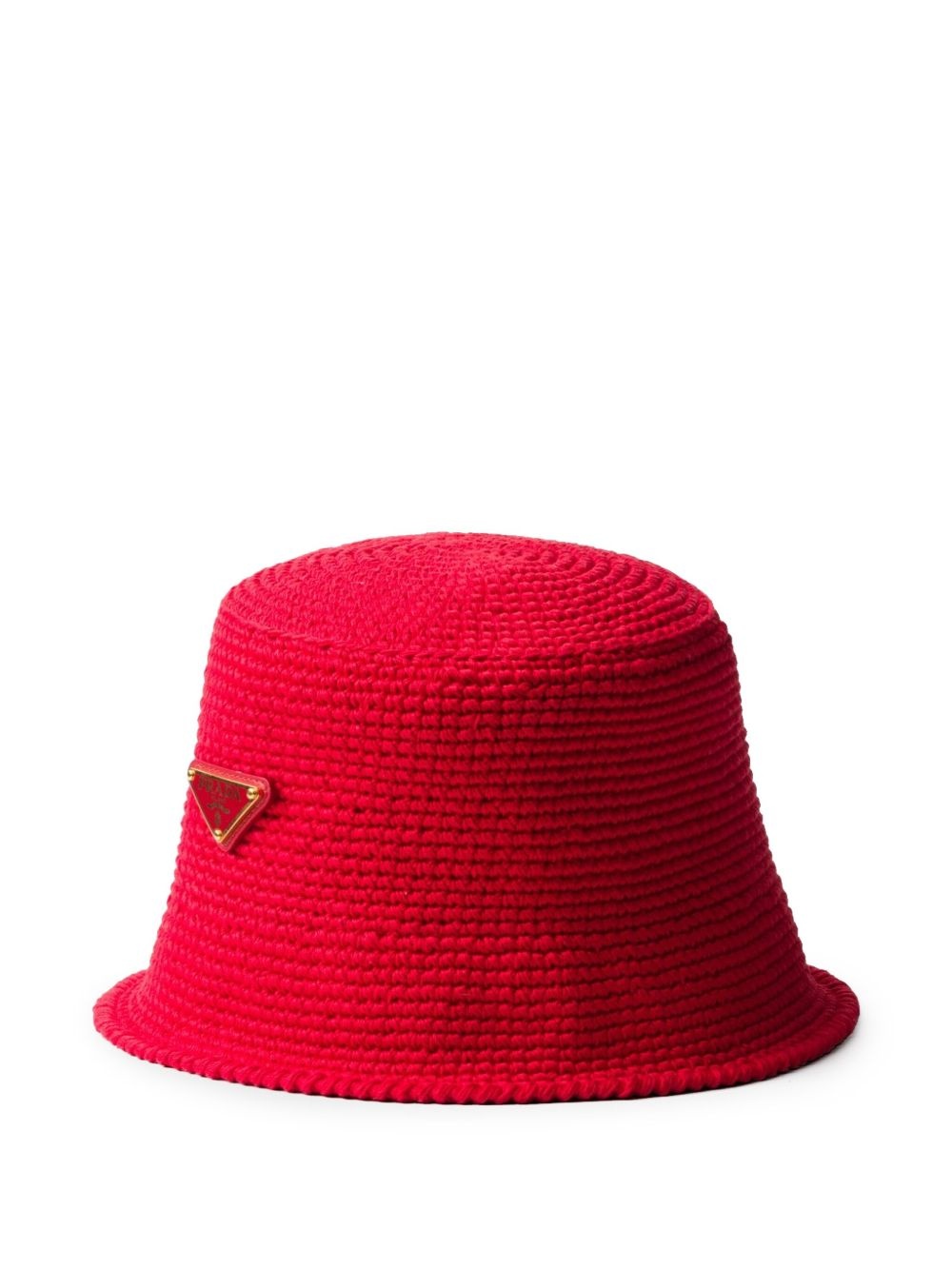 crochet bucket hat Highlights - Red - Round crown - Enamel triangle logo - Flat brim Composition Viscose 100%