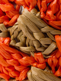 crochet-knit headband Highlights - Carrot orange - Interwoven design - Curved corners - Enamel triangle logo Composition Viscose 100%