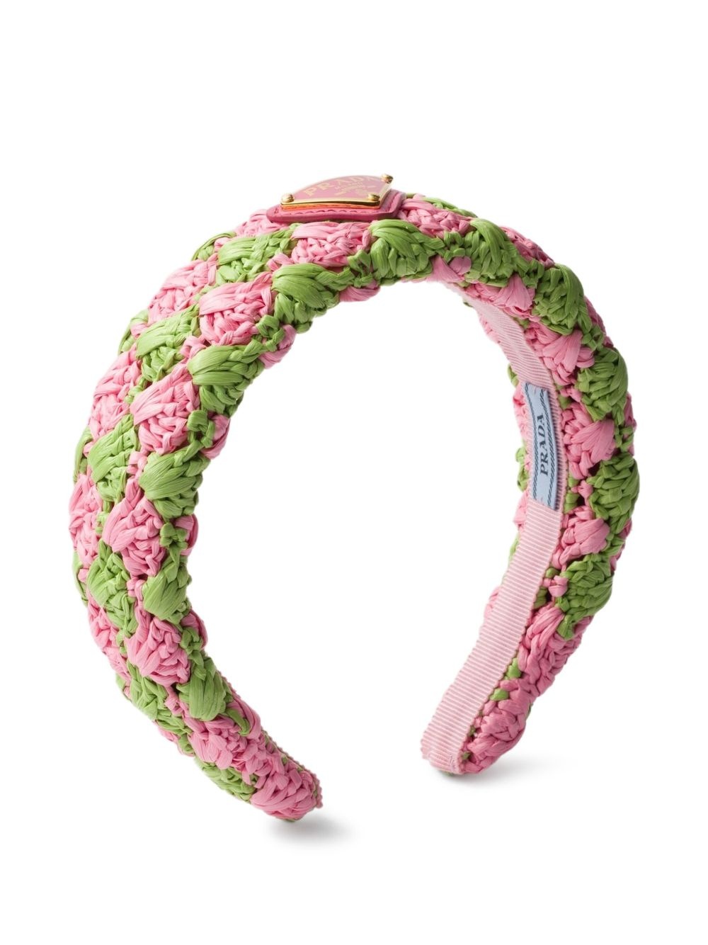 crochet-knit headband Highlights - Blush pink - Interwoven design - Curved corners - Enamel triangle logo Composition Viscose 100%