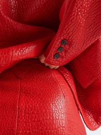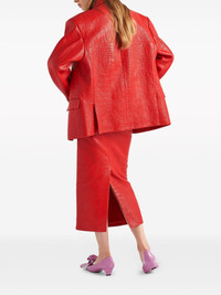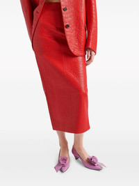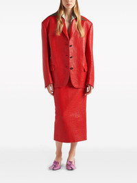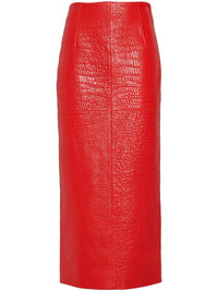 nappa-leather midi skirt This skirt from Prada is exemplary of the Italian house's exquisite leatherwork. It's crafted from red, textured nappa to a high-waisted silhouette that finishes at the mid calf. Highlights - Poppy red - Leather - Embossed crocodile effect - High-waisted - Triangle logo patch at front - Mid-calf length - Rear slit Composition Leather 100% Washing instructions Specialist Cleaning