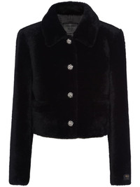 cropped shearling jacket Highlights - Black - Shearling - Logo patch at the sleeve - Button embellishment - Spread collar - Front button fastening - Long sleeves - Straight hem - Full lining - Cropped Composition Sheep Skin/Shearling 100% Washing instructions Read Manufacturer Guidelines