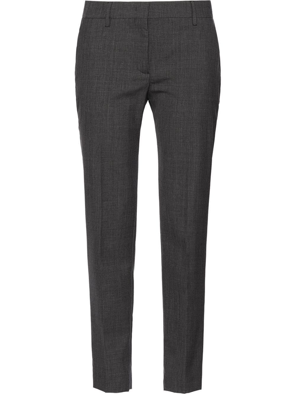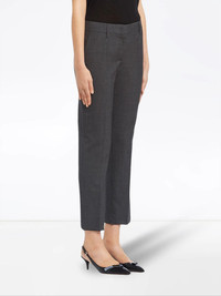 cropped tailored trousers Highlights - The contemporary art inspired prada has a deep enduring heritage that cements the brands legendary status. founded by mario prada and continued by his granddaughter miuccia, the brand has been creating luxurious ready to wear since its conception in 1913. these slate grey cropped tailored trousers from prada feature a zip and hook closure, rear welt pockets and two side pockets. Composition Outer: Wool 100%