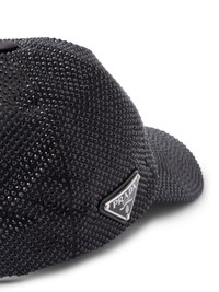 crystal-embellished baseball cap Adorned with tonal crystal embellishments, this Prada baseball cap spotlights the house's instantly recognisable triangle logo on its side. Highlights - Black - Cotton - Triangle logo - Crystal embellishment - Six-panel construction - Fabric-covered button at the crown - Curved peak Composition Lining: Cotton 100% Outer: Crystal 100% SIZE & FIT Measurement CIRCUMFERENCE 22.04 in(56 cm) BRIM 2.75 in(7 cm)