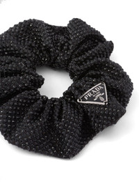 crystal-embellished satin scrunchie Ordinary isn't for you. Shine through the day with this crystal-embellished hair scrunchie from Prada, which features a signature logo plaque. The small details make all the difference. Highlights - Black - Crystal embellishment - Enamel triangle logo - Elasticated band Composition Synthetic Crystal 100%, Enamel 100%, Satin 100%