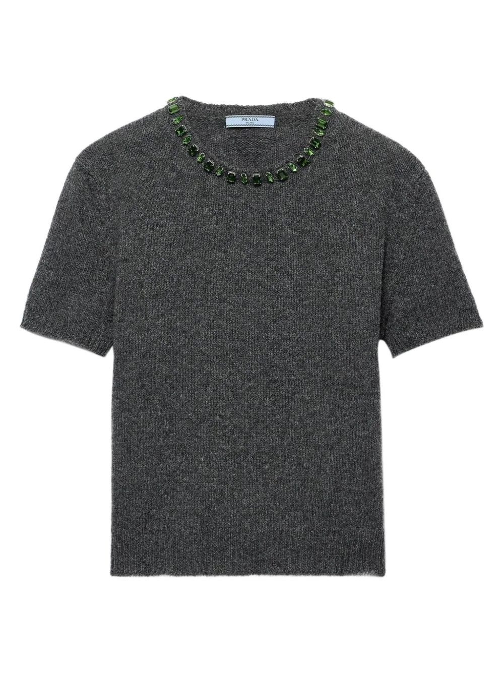 crystal-embellished knitted T-shirt Highlights - Grey - Crystal embellishment - Ribbed-knit trim Composition Crystal 100%, Virgin Wool 70%, Cashmere 30% Washing instructions Read Manufacturer Guidelines