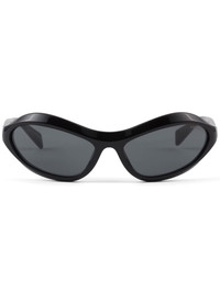 curved shield-frame sunglasses Highlights - Black - Acetate - Shield frame - Curved design - Tinted lenses - Uv-protective lenses - Logo-stamped arms - Curved tips - Metallic gold-tone detailing - These glasses come with a protective case. Composition Bio Acetate 100% SIZE & FIT Measurement Arm Length 5.11 in(13 cm) Bridge Width 0.66 in(1.7 cm) Lens Diameter 2.4 in(6.1 cm)