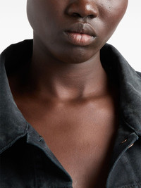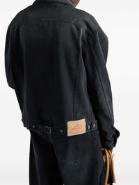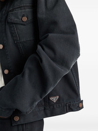 denim blouson jacket Highlights - Black - Cotton - Washed denim - Enamel triangle logo - Logo patch to the rear - Straight-point collar - Front button fastening - Long sleeves - Buttoned cuffs - Two chest flap pockets - Adjustable strap to the rear - Straight hem Composition CALFSKIN 100%, Cotton 100%