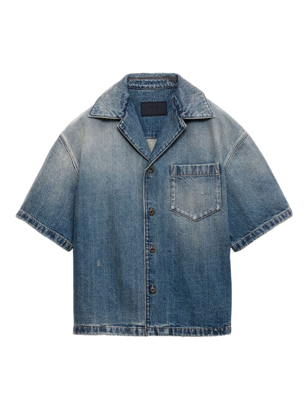 denim shirt Highlights - Light blue - Front button fastening - Chest patch pocket - Camp collar - Short sleeves Composition Cotton 100%