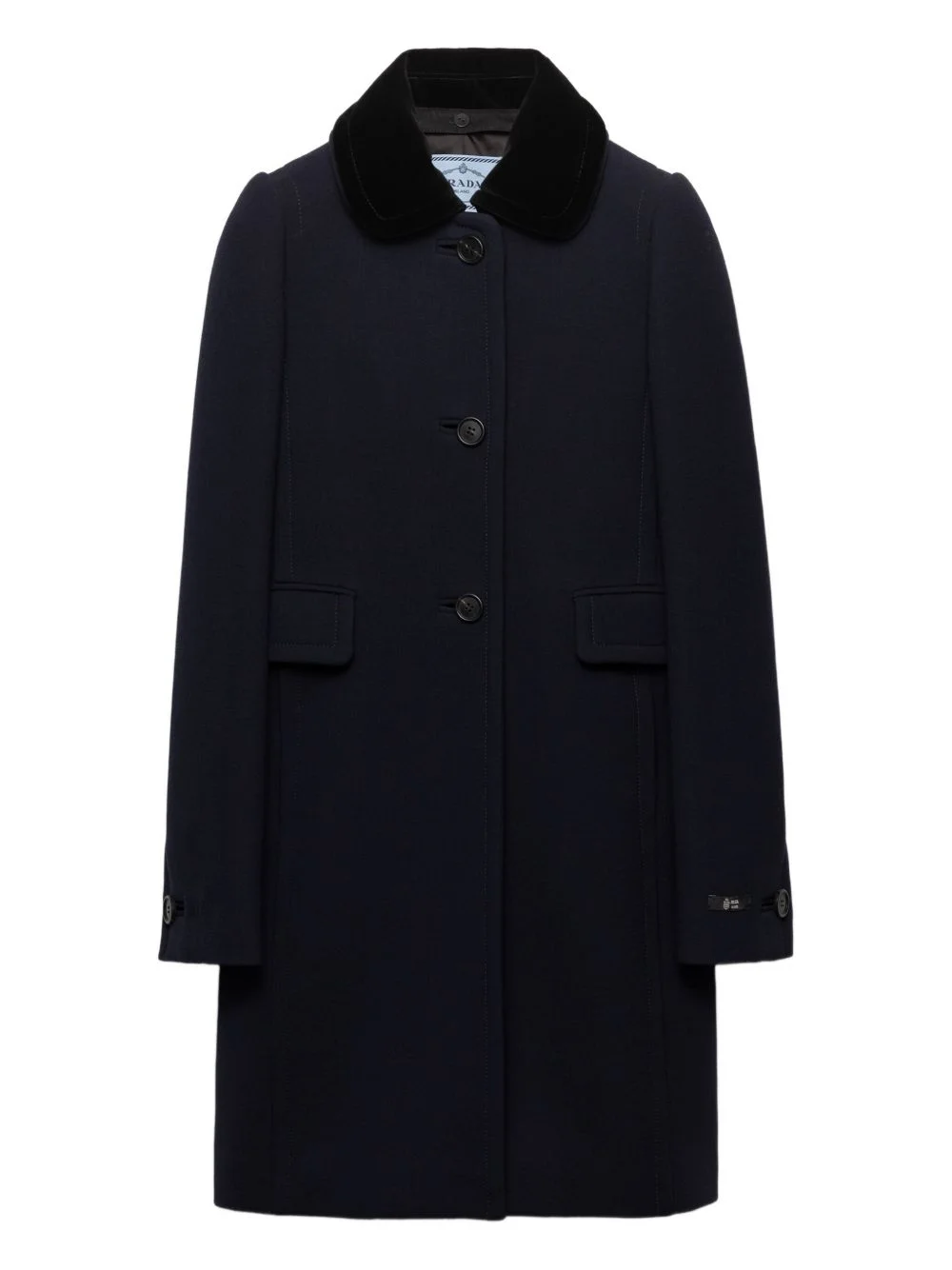 detachable collar single-breasted coat Highlights - Blue - Detachable velvet collar - Button closure - Flapped welt pockets - Logo label Composition Virgin Wool 100%